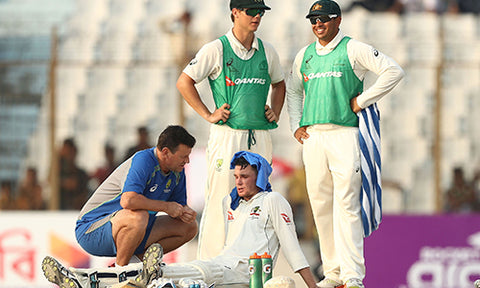 TechNiche ANZ have been supplying the Australian Mens Cricket Team with Cooling Vests and Towels for quite some time now. They were certainly needed in the recent tour of Bangladesh. The extreme heat and humidity in Chittagong had a serious effect on a number of the players, including Peter Handscomb.